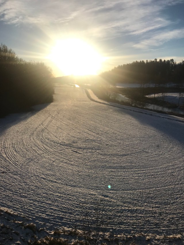 ”Sista backen. Fyfan vad bra jag är. Det var ju inte så farligt. Fast jag hatar kommunens snöröjningskompetens. De måste ha valt fel jobb”